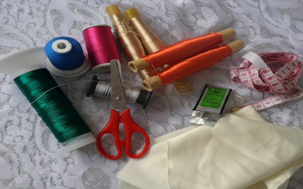 | قماش مناسب | الأقمشة المتماسكة مثل “الكريب”، “المليفة”، أو حتى قطعة من قماش قطني لتجربة الغرز عليها أولاً. |